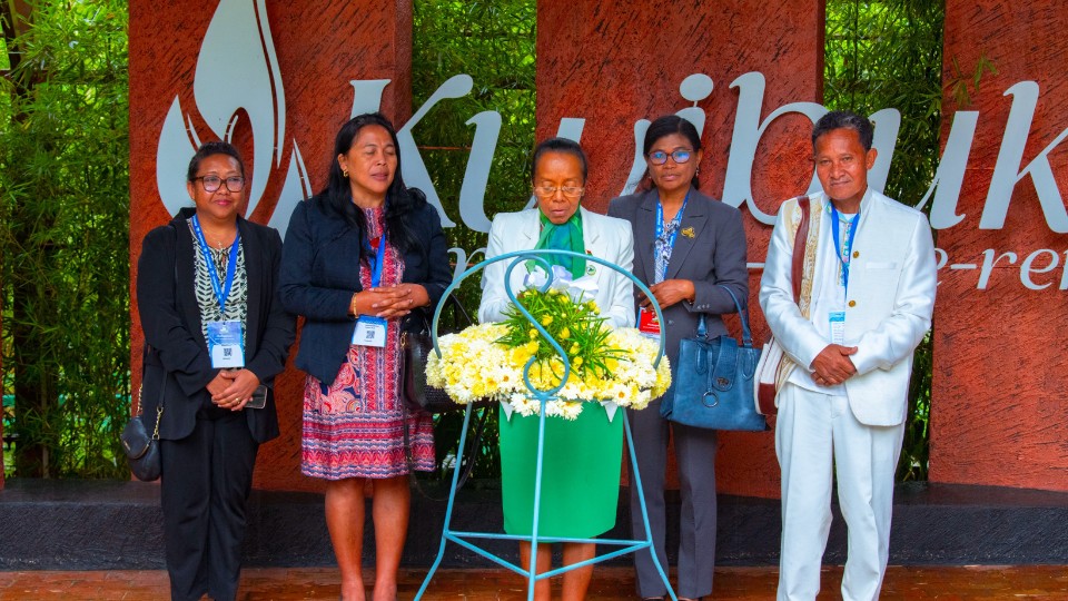 She was then taken through the permanent exhibitions by the Kigali Genocide Memorial’s manager, Dieudonné Nagiriwubuntu, learning more about the origins, occurrence and aftermath of the genocide.
